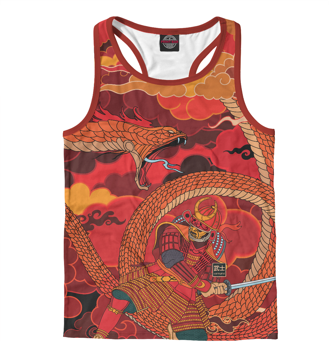 Мужская майка-борцовка с принтом «Самурай и змея»