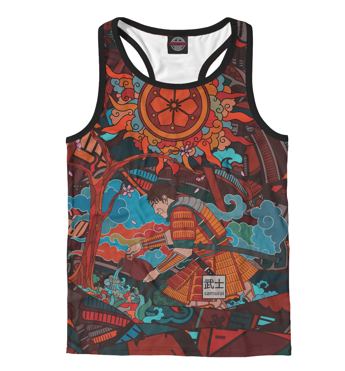 Мужская майка-борцовка с принтом «Самурай у сакуры»
