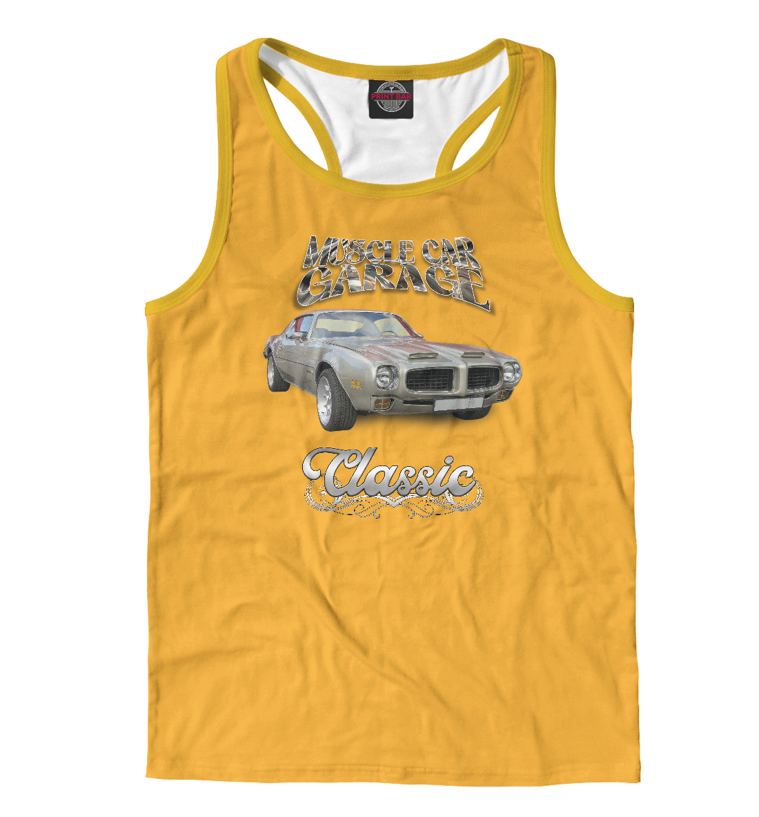 Мужская майка-борцовка с принтом «Серый Muscle car на жёлтом фоне»