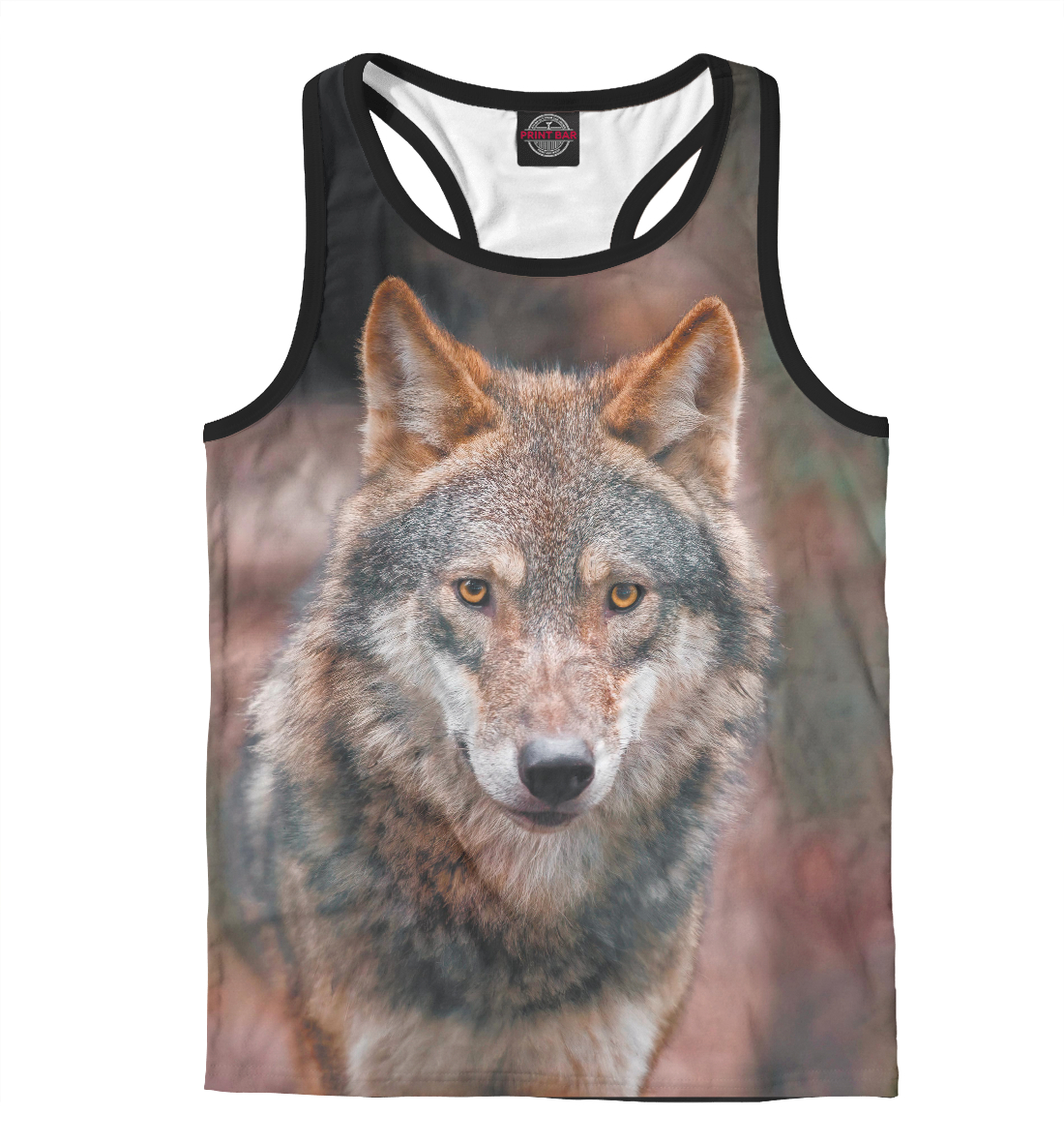 Мужская майка-борцовка с принтом «Серый волк в лесу»