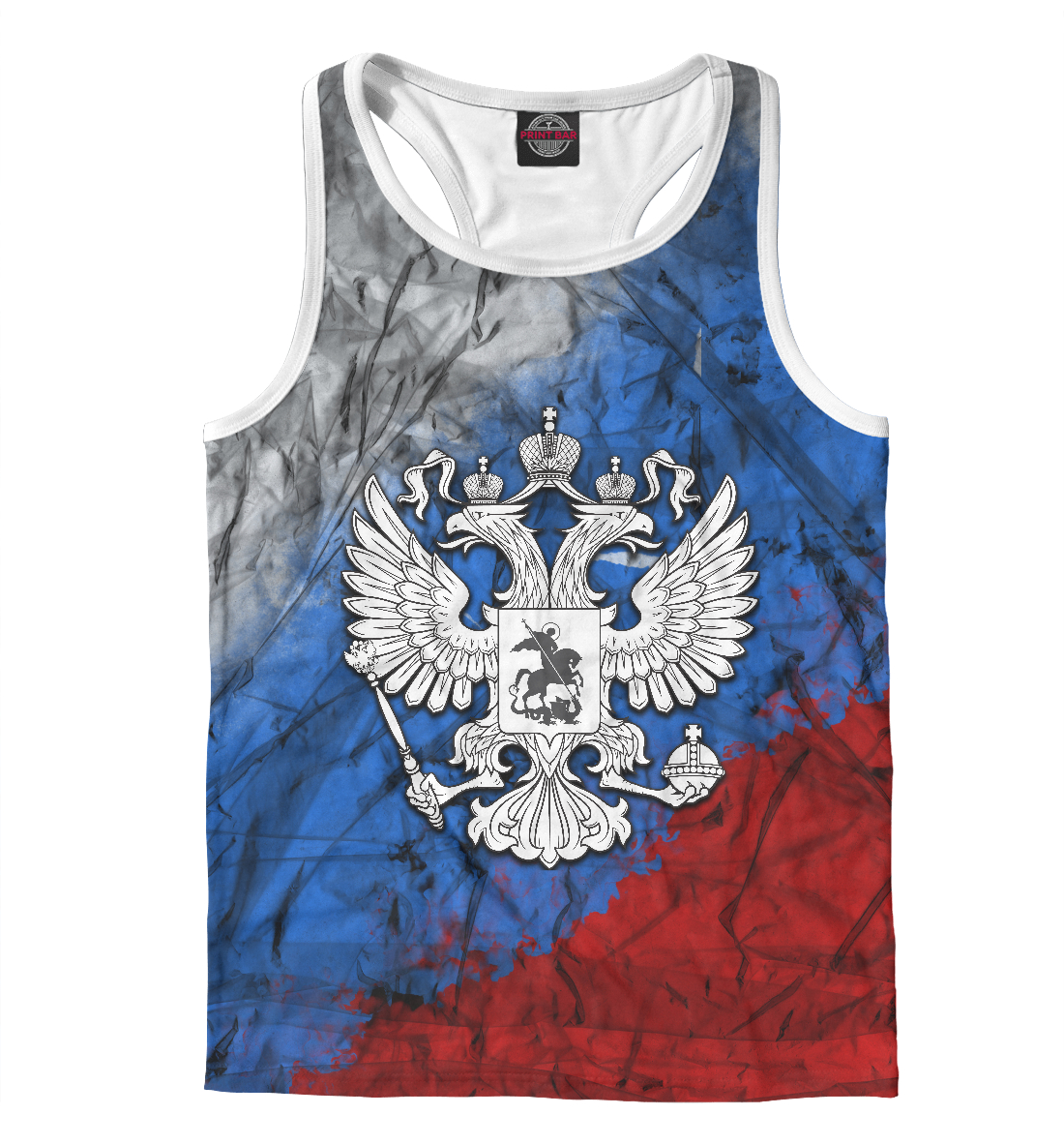 Мужская майка-борцовка с принтом «Символика РФ (триколор)»