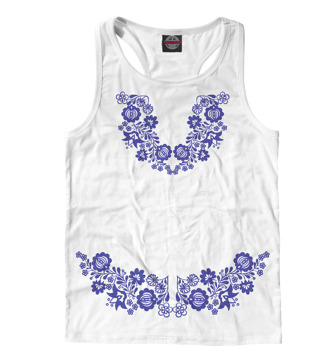 Мужская майка-борцовка с принтом «Синий славянский узор»