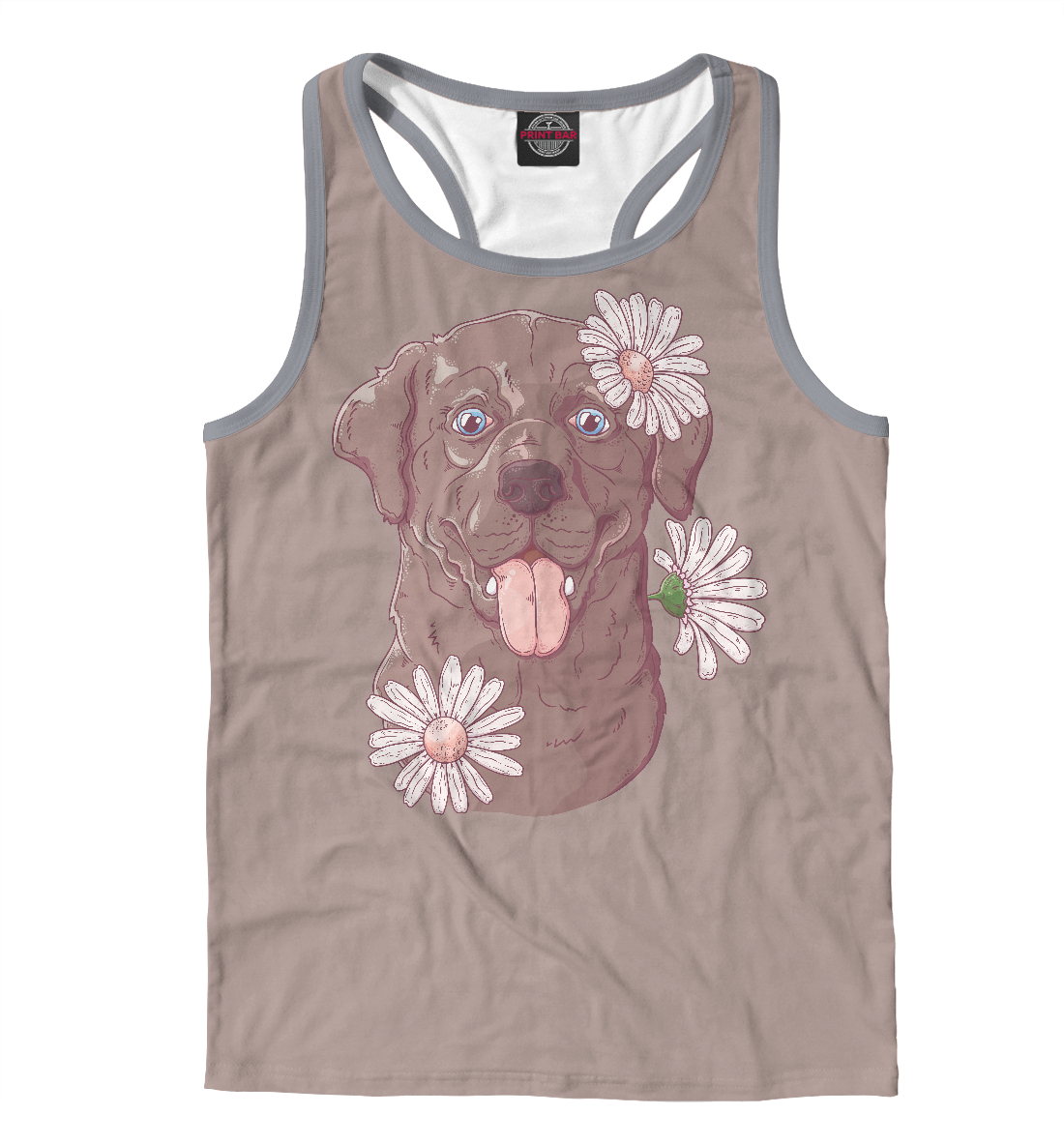 Мужская майка-борцовка с принтом «Собака в цветах»