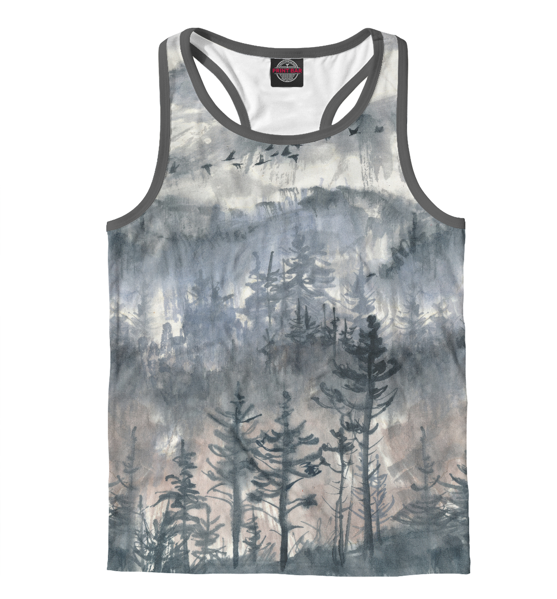 Мужская майка-борцовка с принтом «Сосны в тумане»