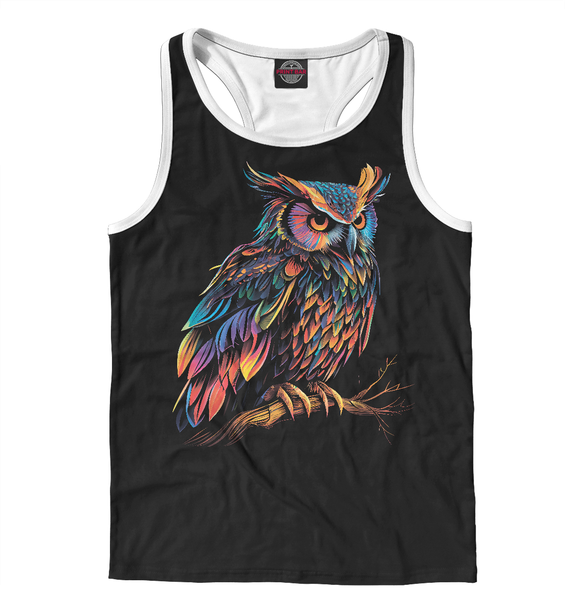 Мужская майка-борцовка с принтом «Сова на ветке в ярких цветах»