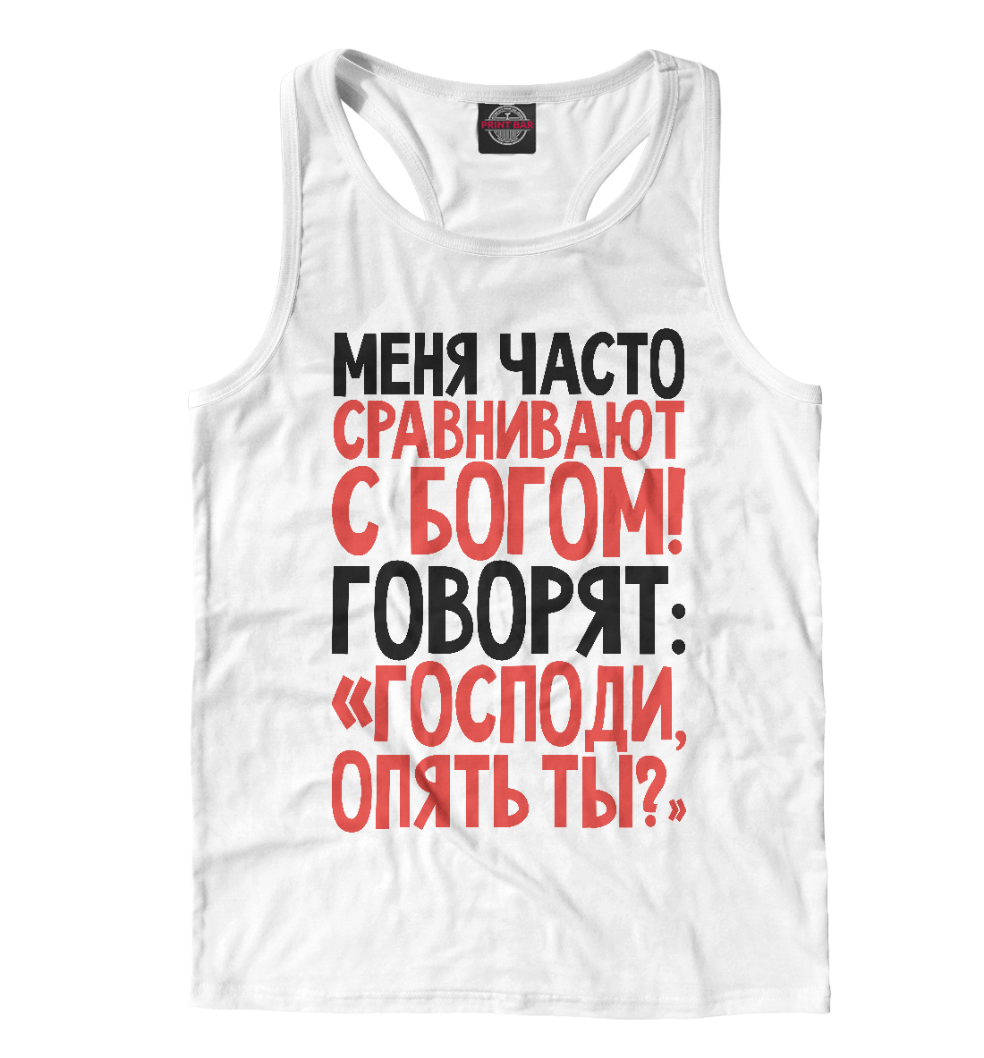 Мужская майка-борцовка с принтом «Сравнивают с Богом»