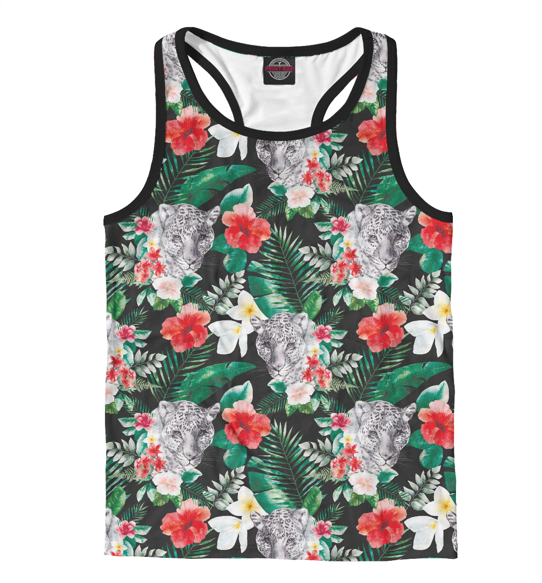 Мужская майка-борцовка с принтом «Тигрица и цветы»
