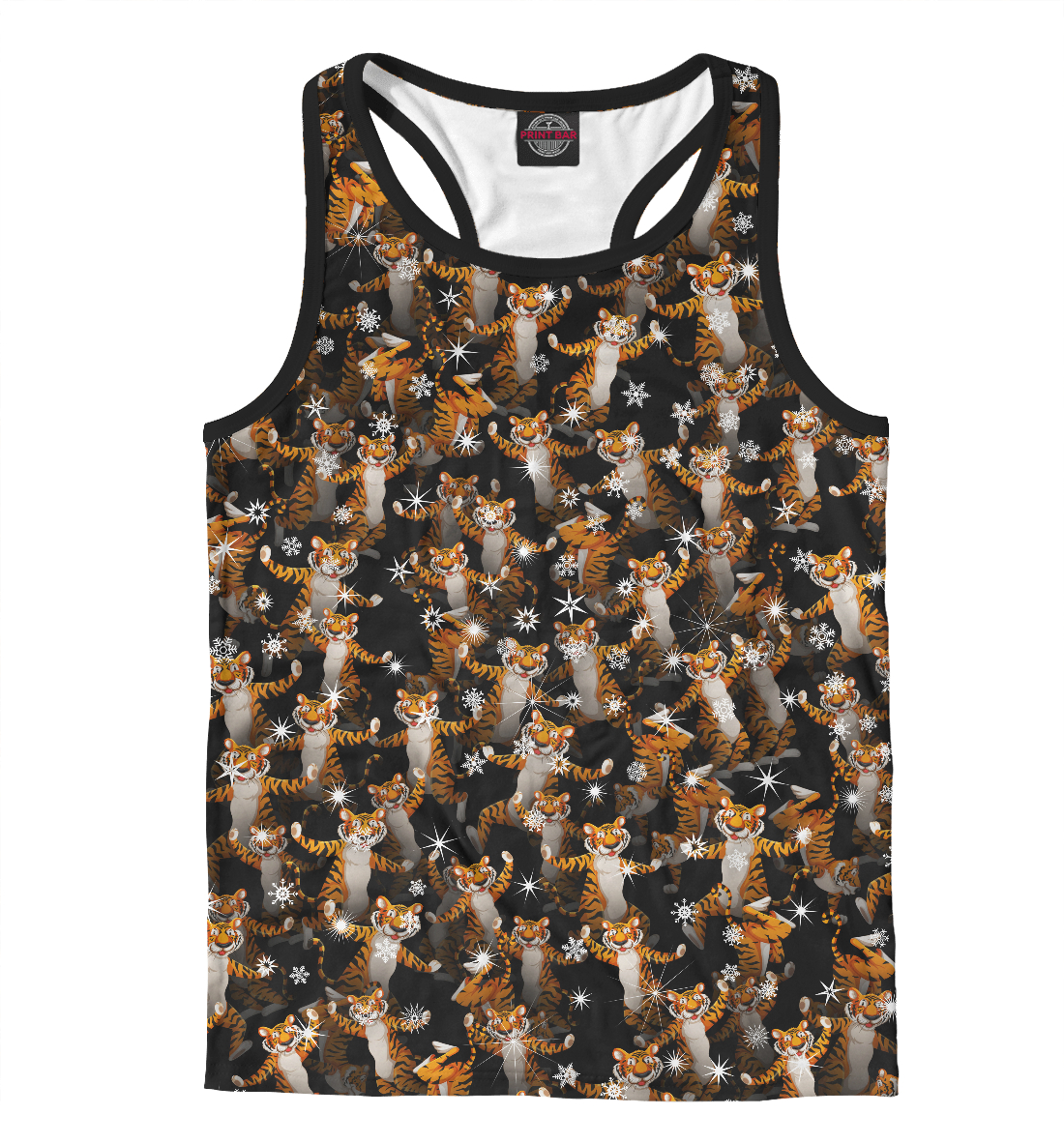 Мужская майка-борцовка с принтом «Тигры пляшут Новый Год»