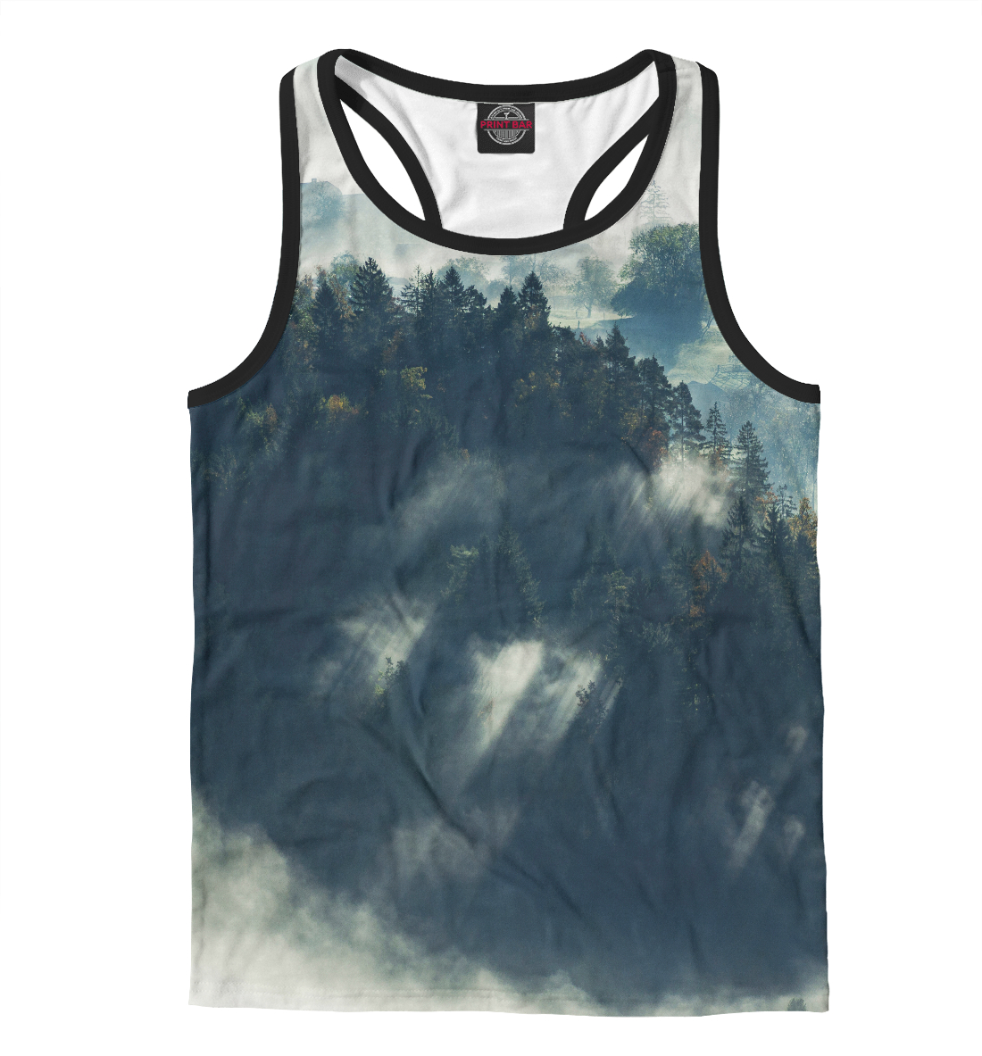 Мужская майка-борцовка с принтом «Туманный лес. Лучи солнца»