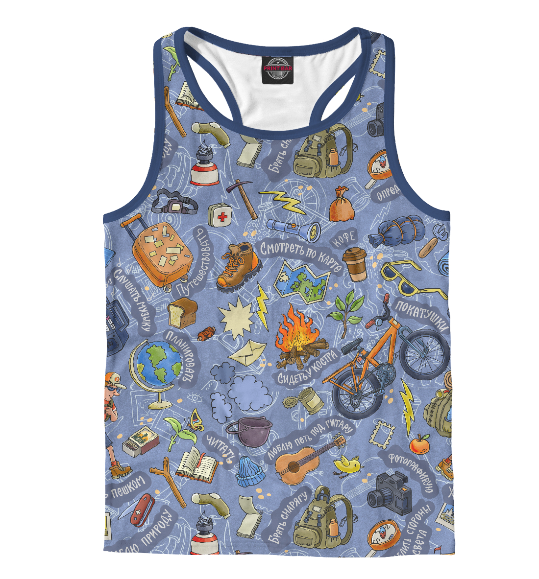 Мужская майка-борцовка с принтом «Туристический паттерн цветной»