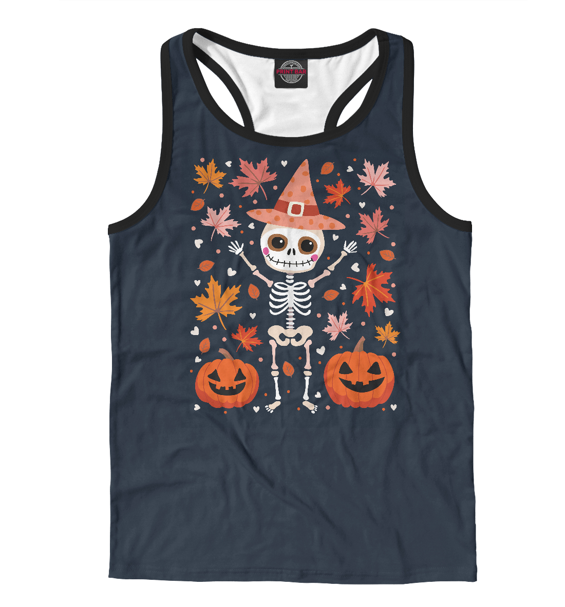 Мужская майка-борцовка с принтом «Веселый скелет с тыквами»