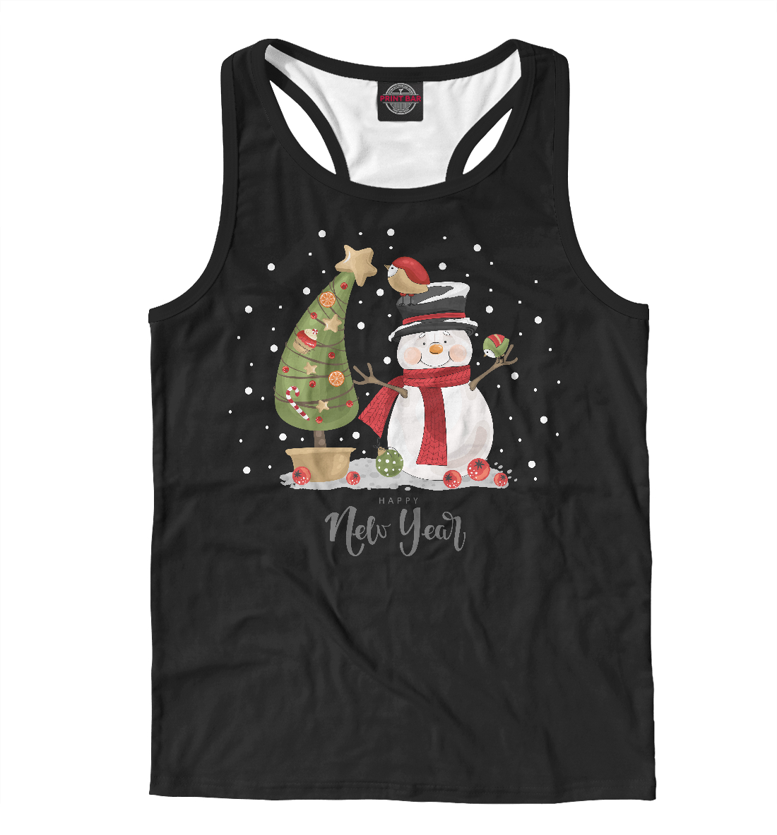 Мужская майка-борцовка с принтом «Веселый снеговик с елкой»