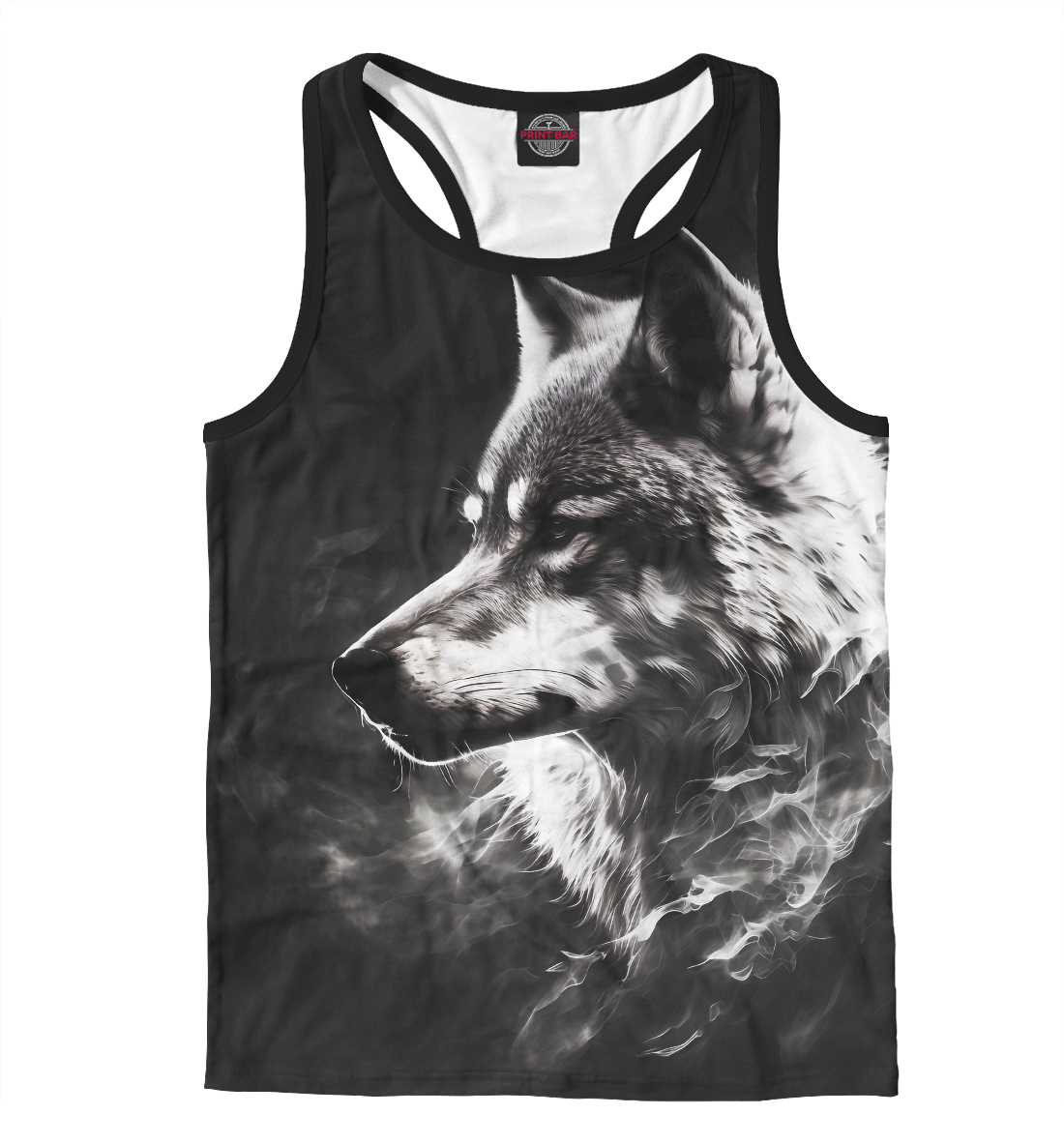Мужская майка-борцовка с принтом «Волк в белом дыму»