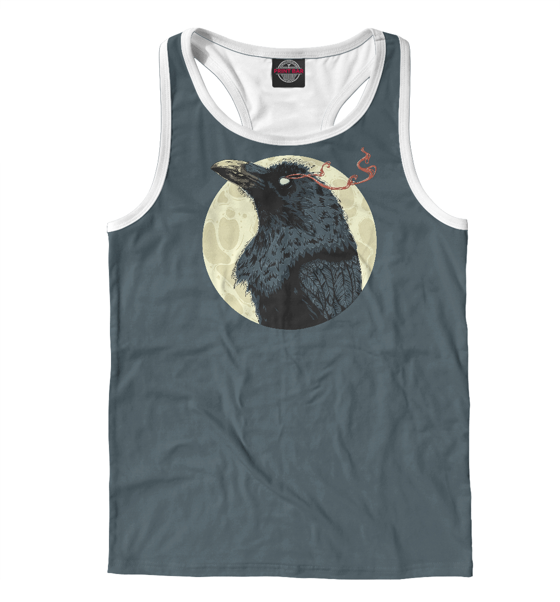 Мужская майка-борцовка с принтом «Ворон на фоне луны»