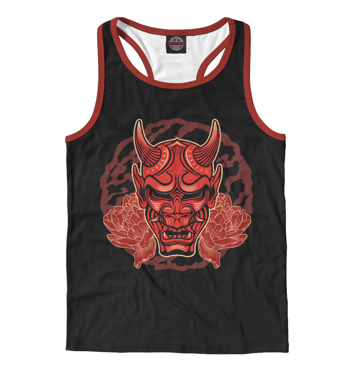 Мужская майка-борцовка с принтом «Японская маска Хання с пионами»