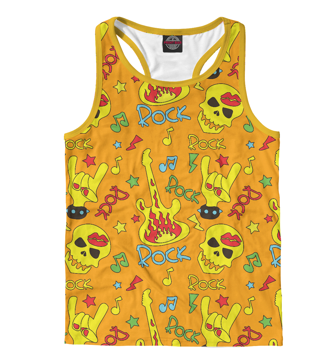 Мужская майка-борцовка с принтом «Яркий рок узор на оранжевом»