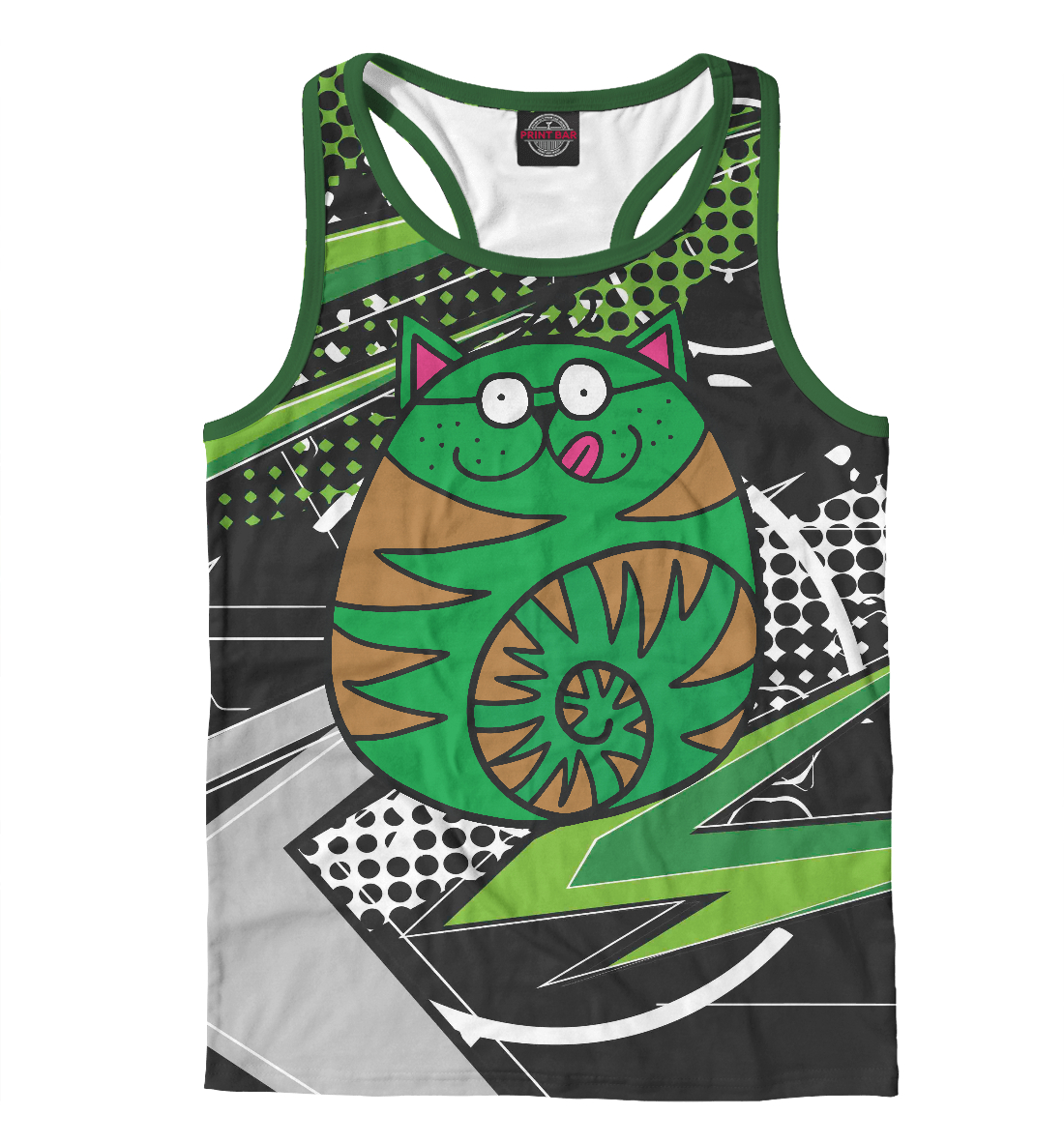 Мужская майка-борцовка с принтом «Зеленый круглый кот»