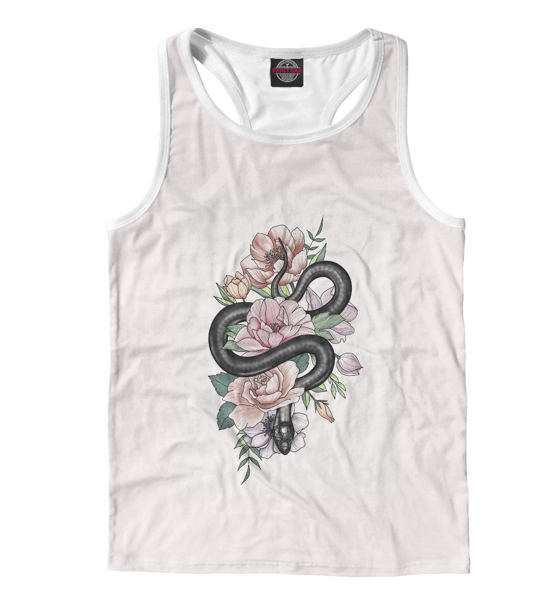 Мужская майка-борцовка с принтом «Змея в цветах»
