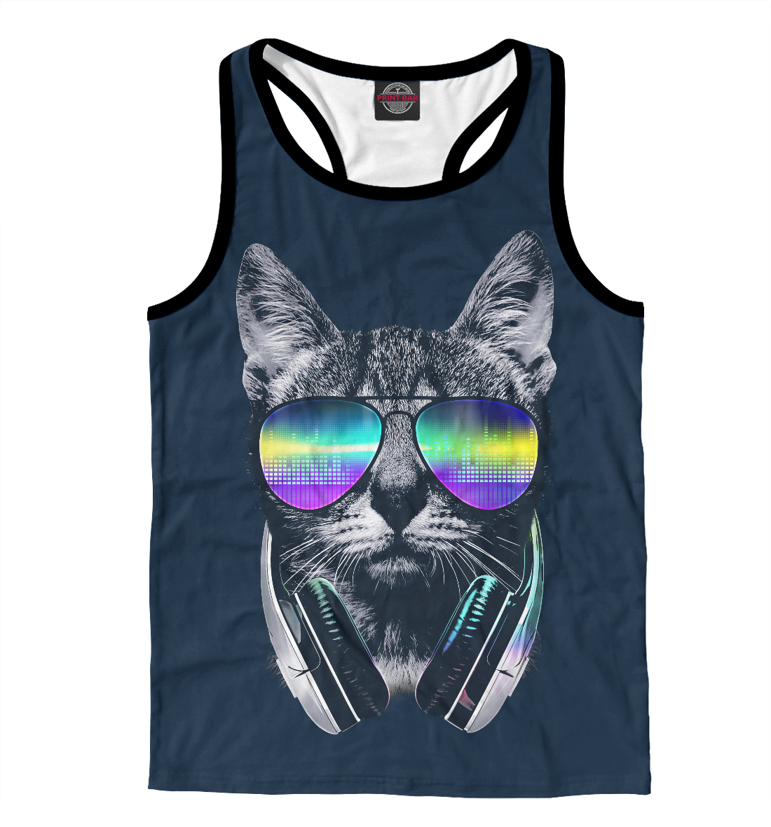 Мужская майка-борцовка с принтом «Кот с наушниками»