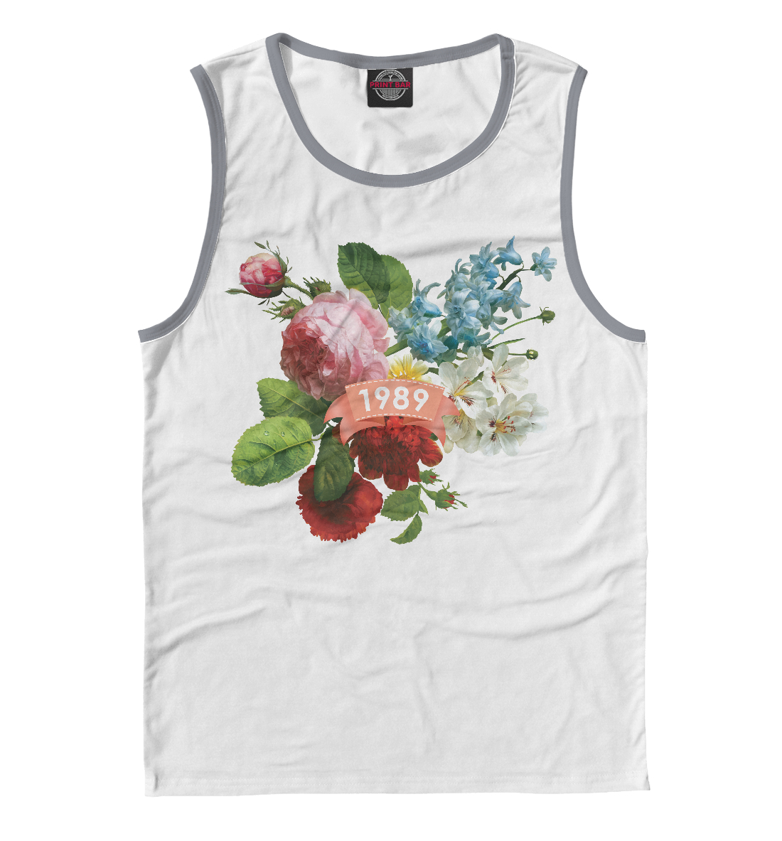 Мужская майка с принтом «1989 год, букет летних цветов»