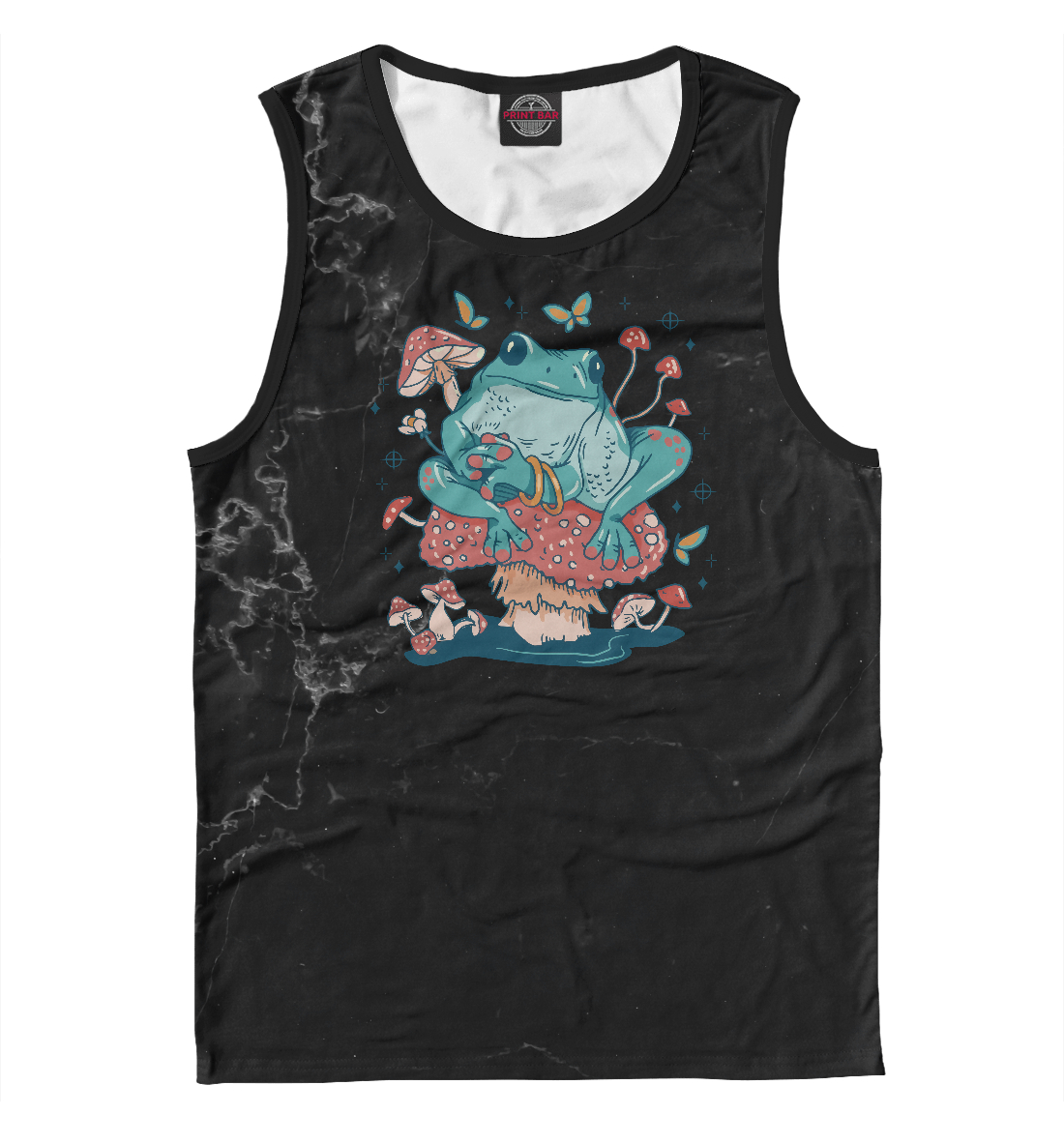 Мужская майка с принтом «Cottagecore frog on mushroo»