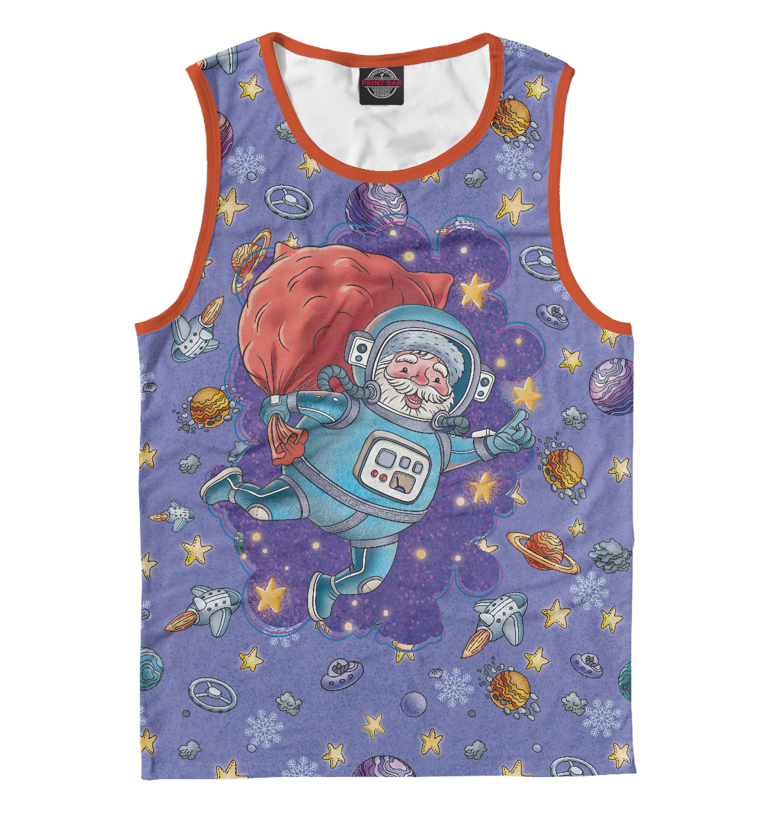 Мужская майка с принтом «Дед Мороз космонавт в открытом космосе»