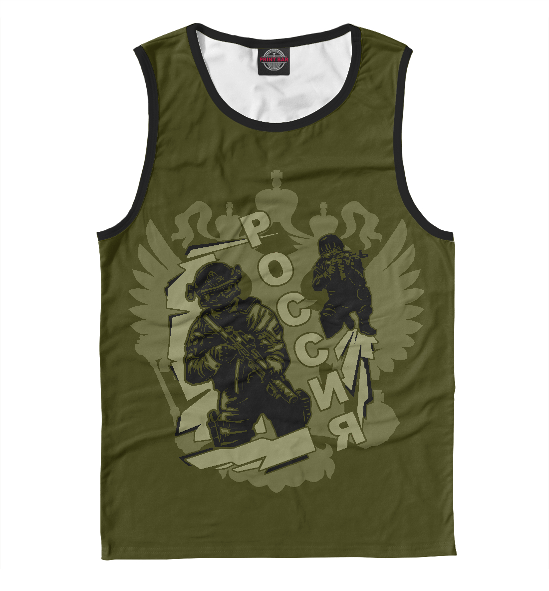 Мужская майка с принтом «Герб и воины на оливковом фоне»