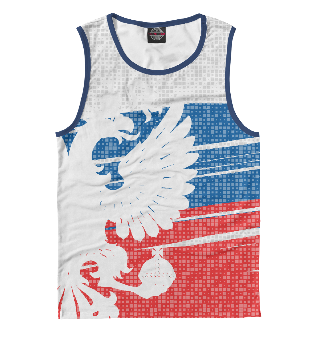 Мужская майка с принтом «Герб России белый на фоне флага»