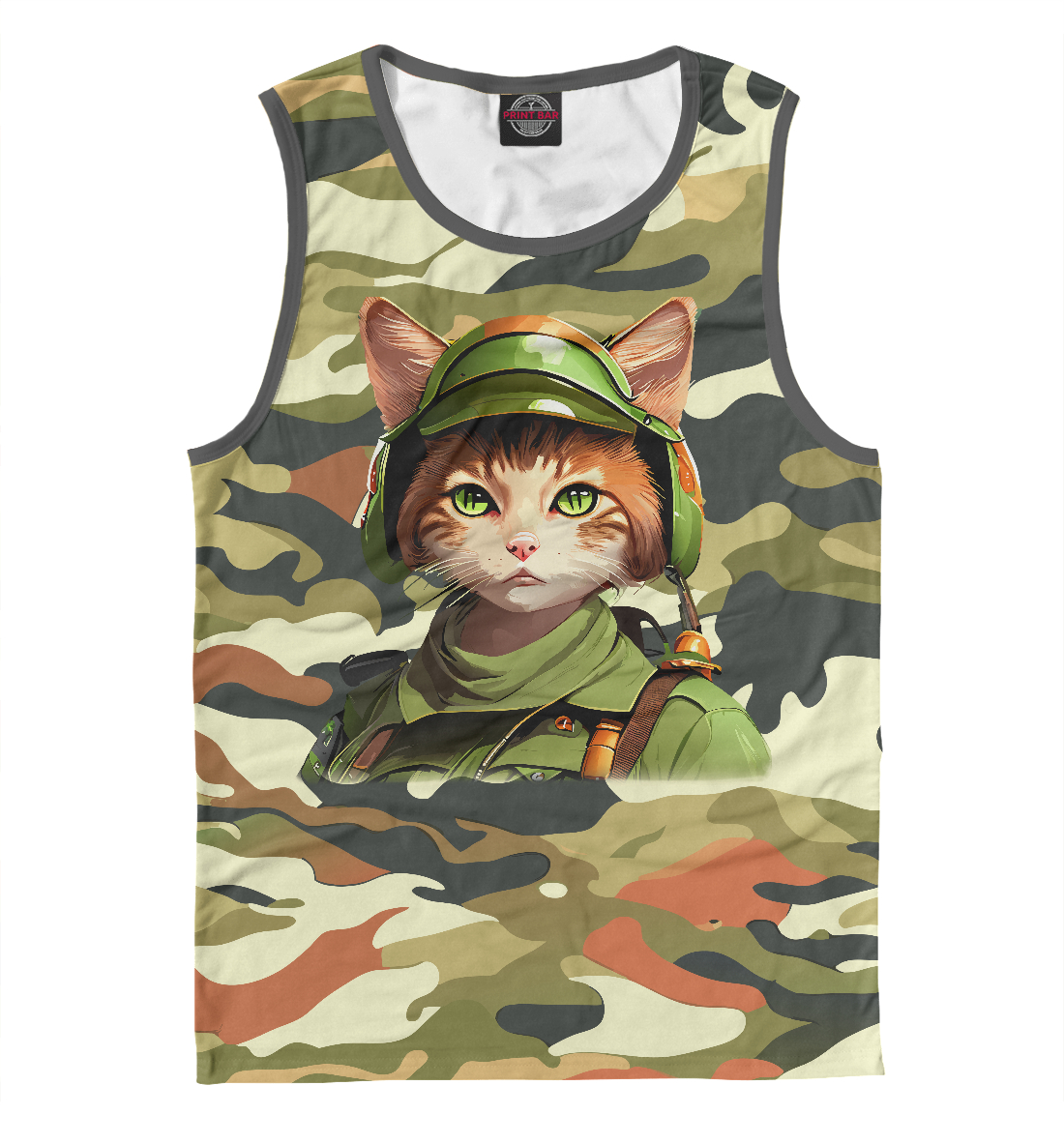 Мужская майка с принтом «Кошка военная»
