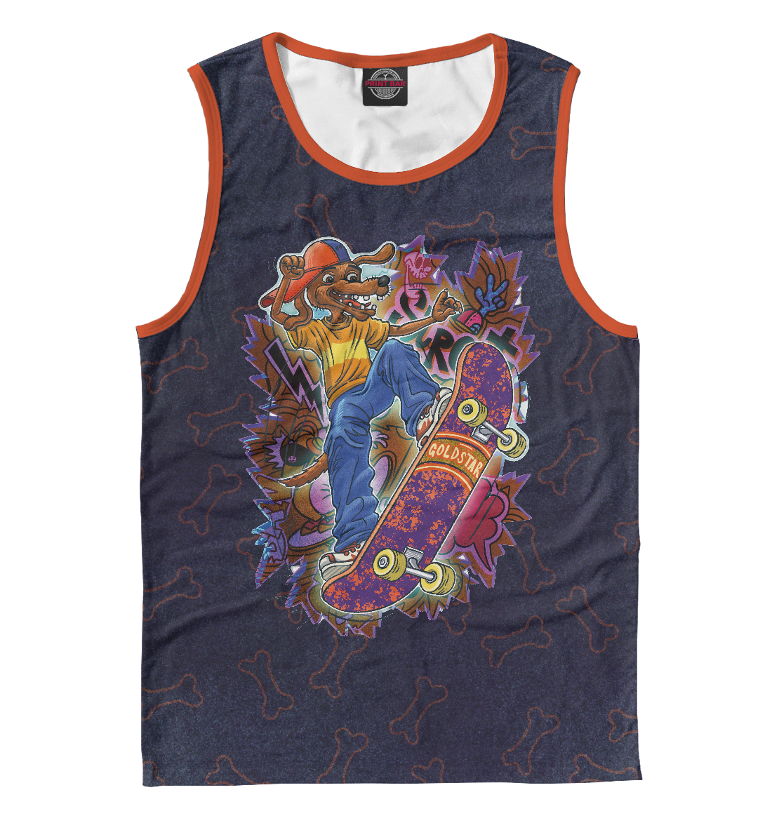 Мужская майка с принтом «Пес скейтбордист катается на скейте»