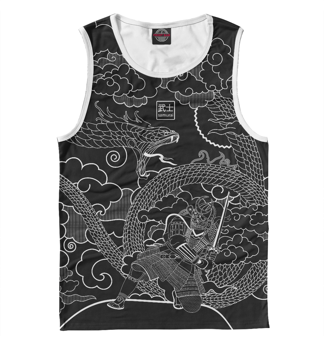 Мужская майка с принтом «Самурай и дракон»