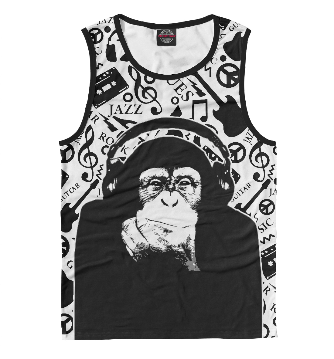 Мужская майка с принтом «Шимпанзе в наушниках»