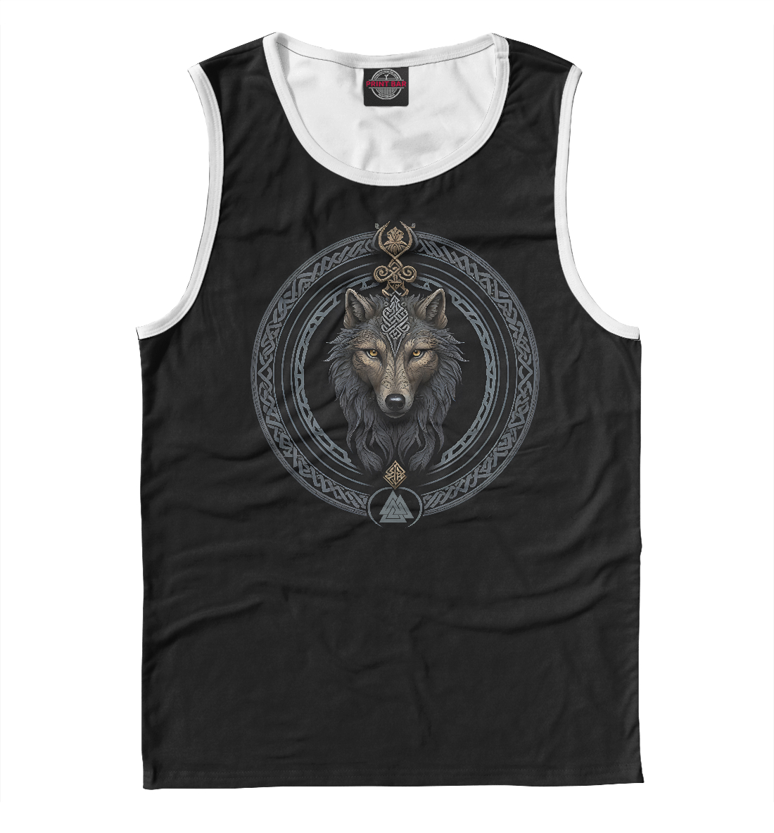 Мужская майка с принтом «Волк талисман с валькнутом»