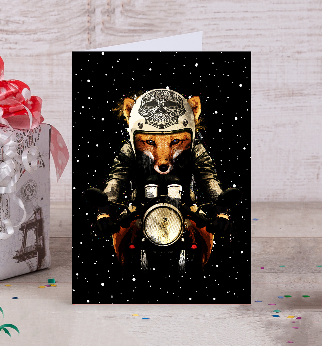 Открытка Лис байкер