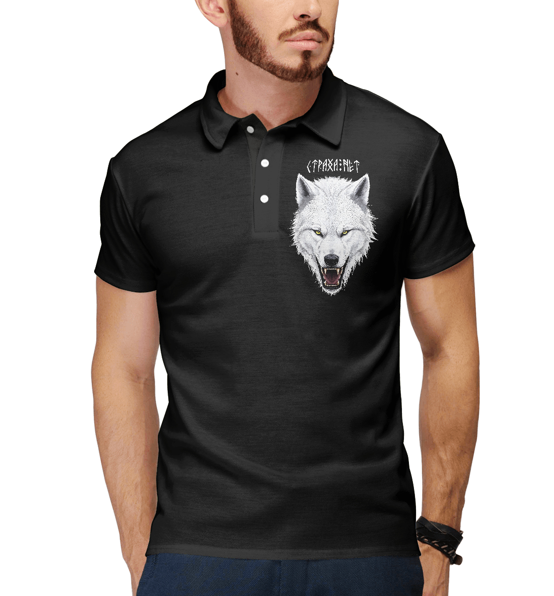 Мужское поло с принтом «Белый волк - моя земля, мои правила!»
