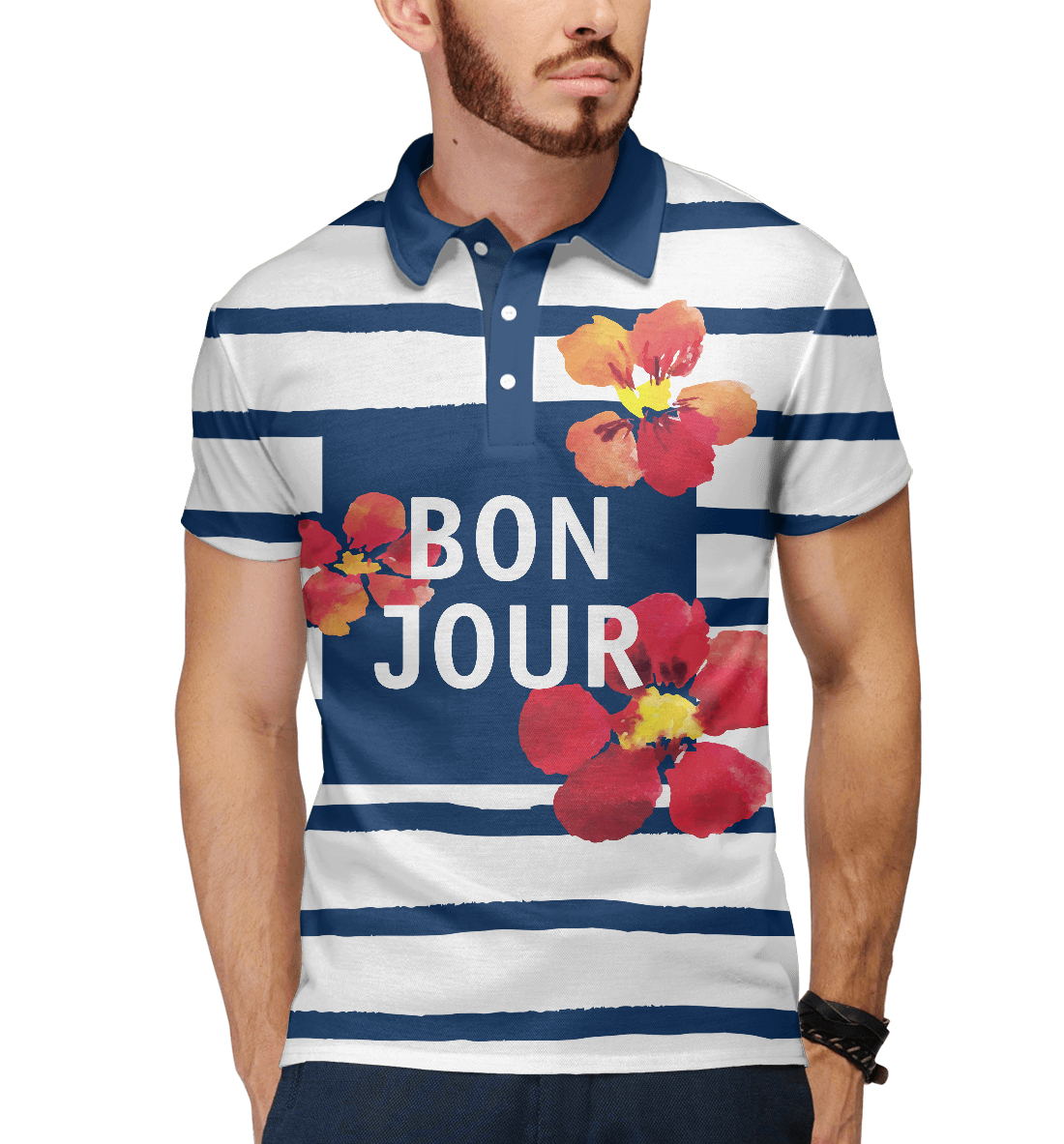 Мужское поло с принтом «Bonjour»