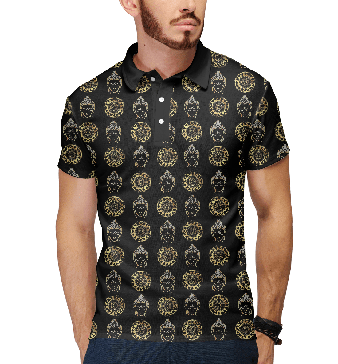 Мужское поло с принтом «Будда и золотая мандала (солнце)»
