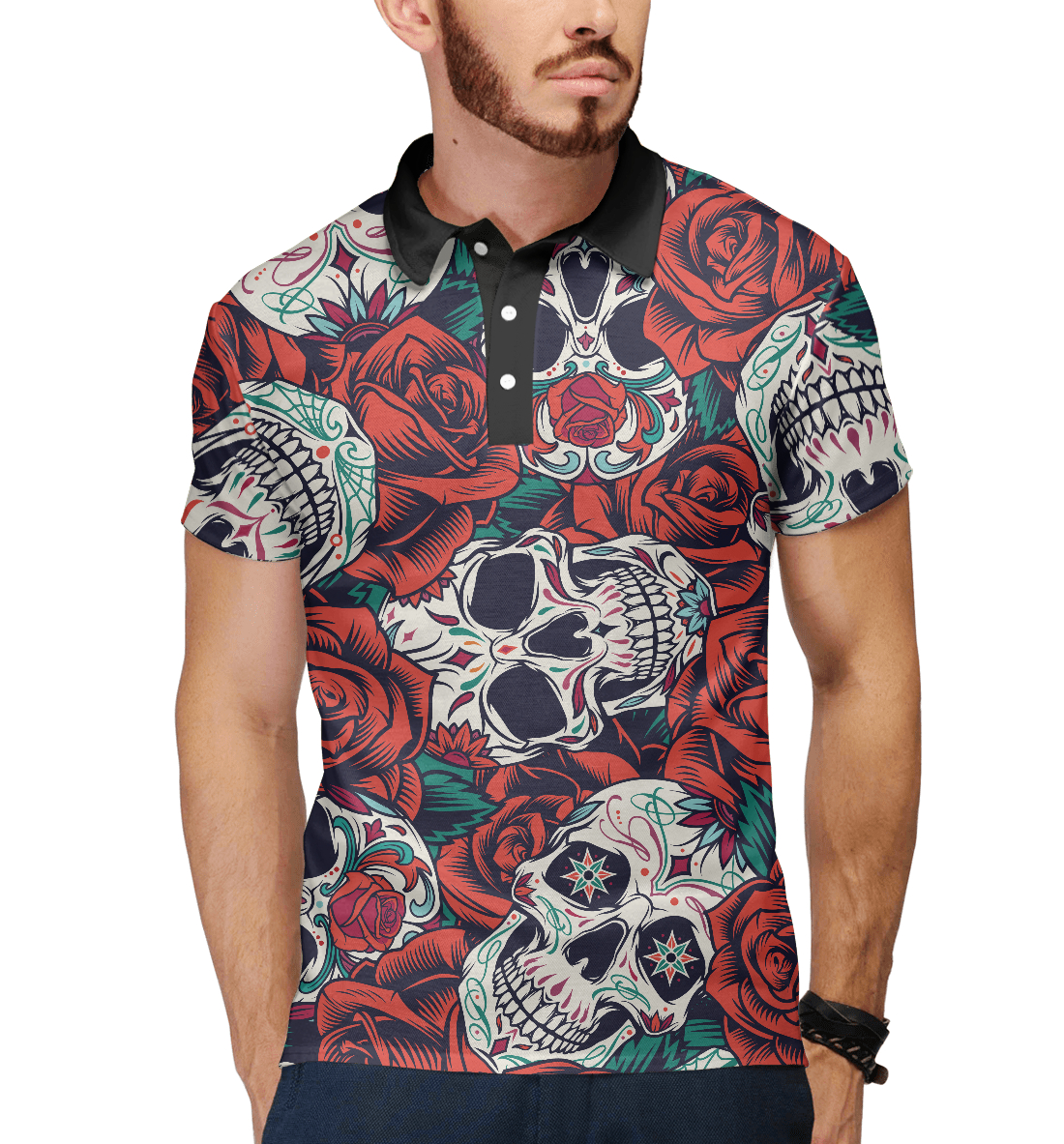 Мужское поло с принтом «ЦВЕТОЧНЫЕ ЧЕРЕПА»