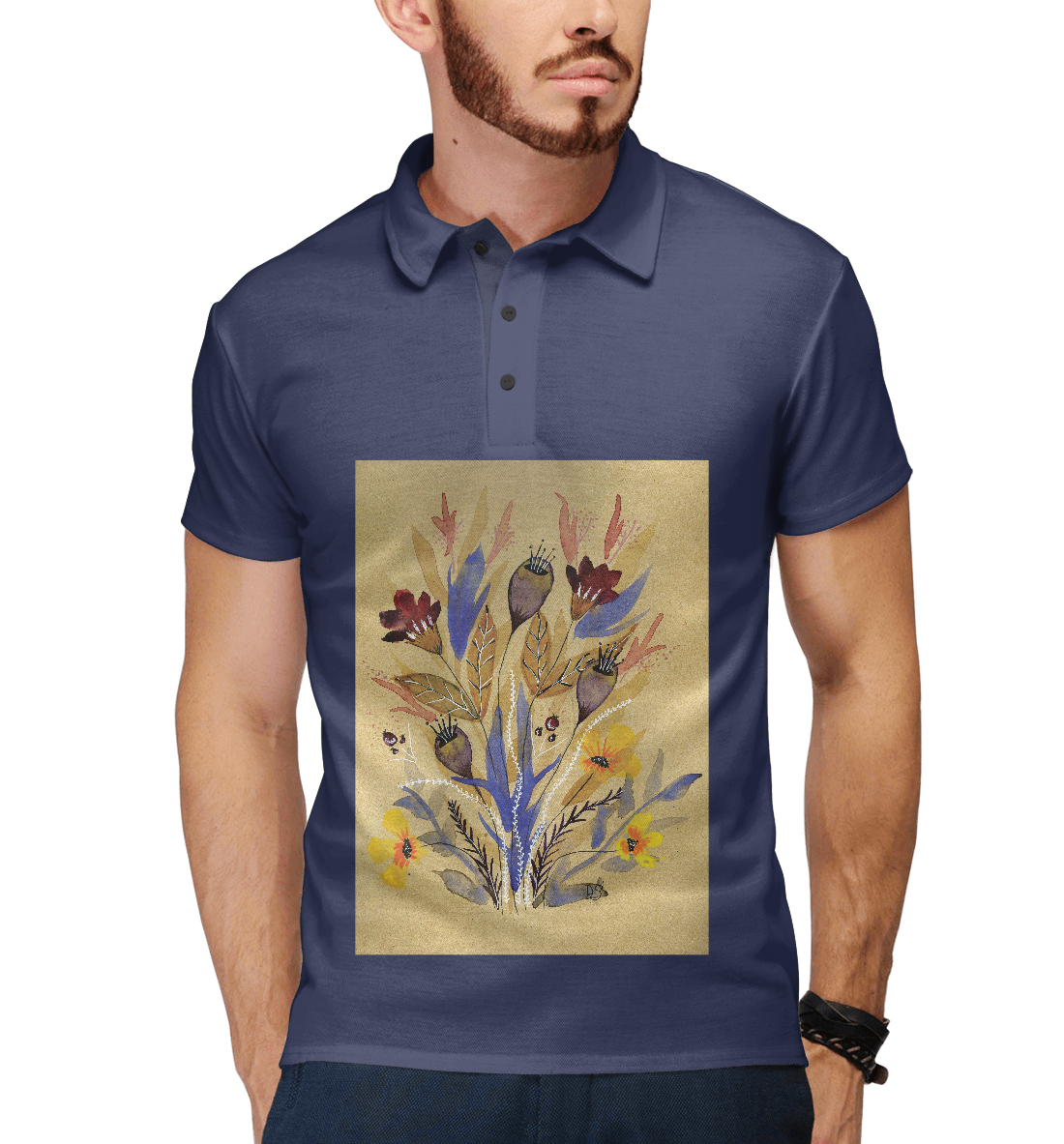 Мужское поло с принтом «Цветы»
