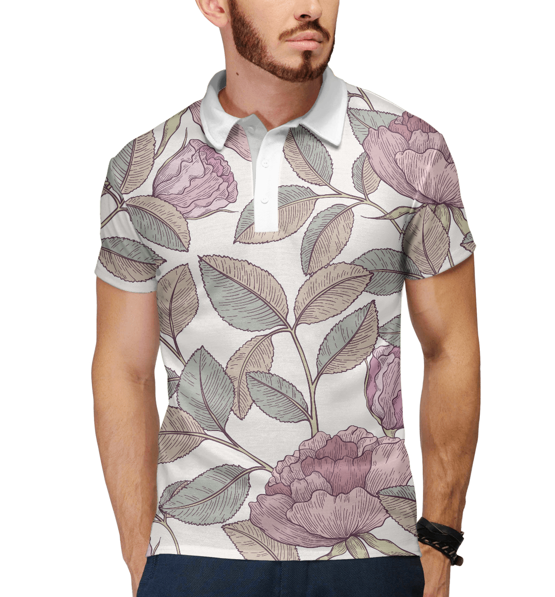 Мужское поло с принтом «Цветы с листвой»