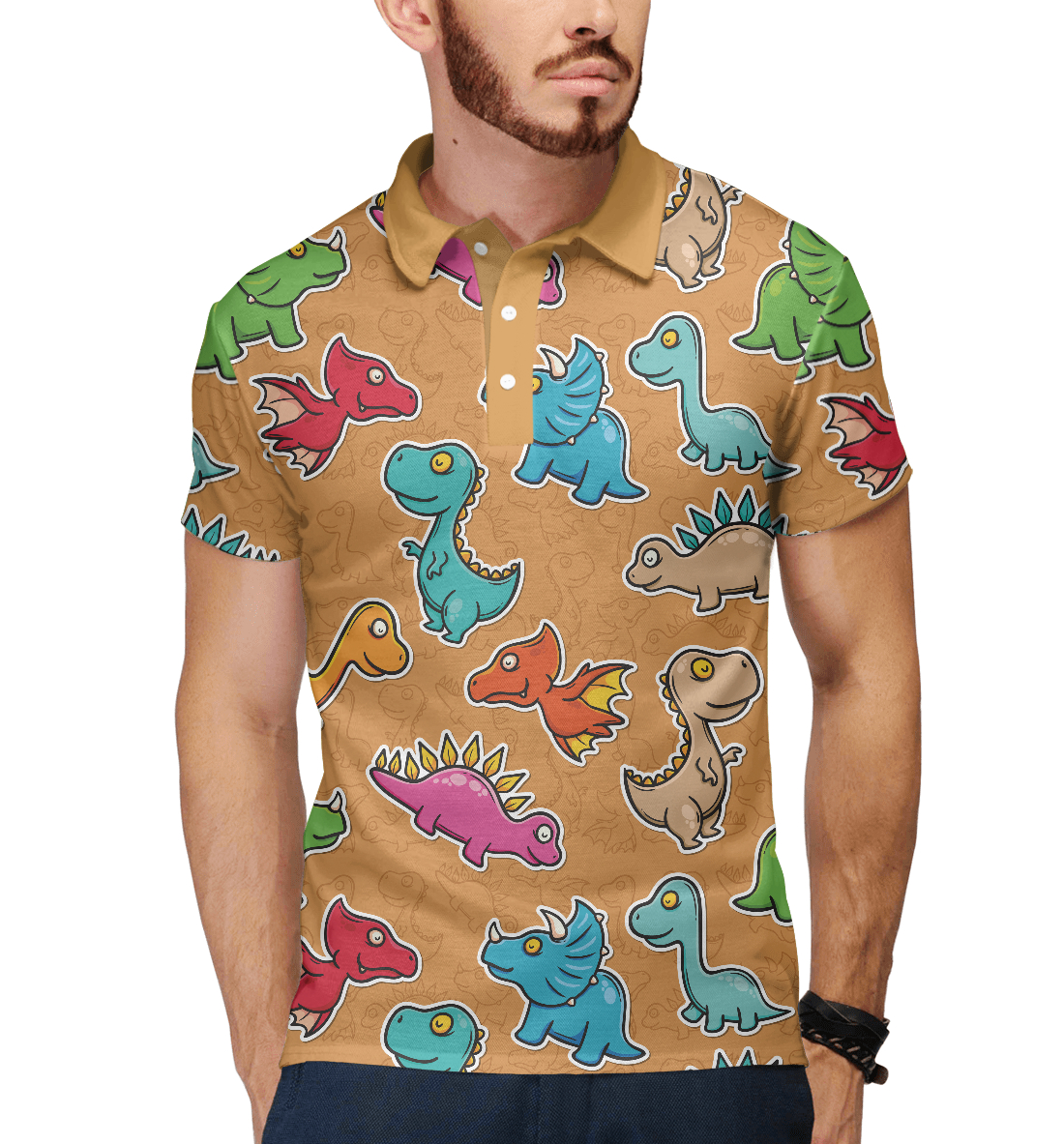 Мужское поло с принтом «Динозаврики»