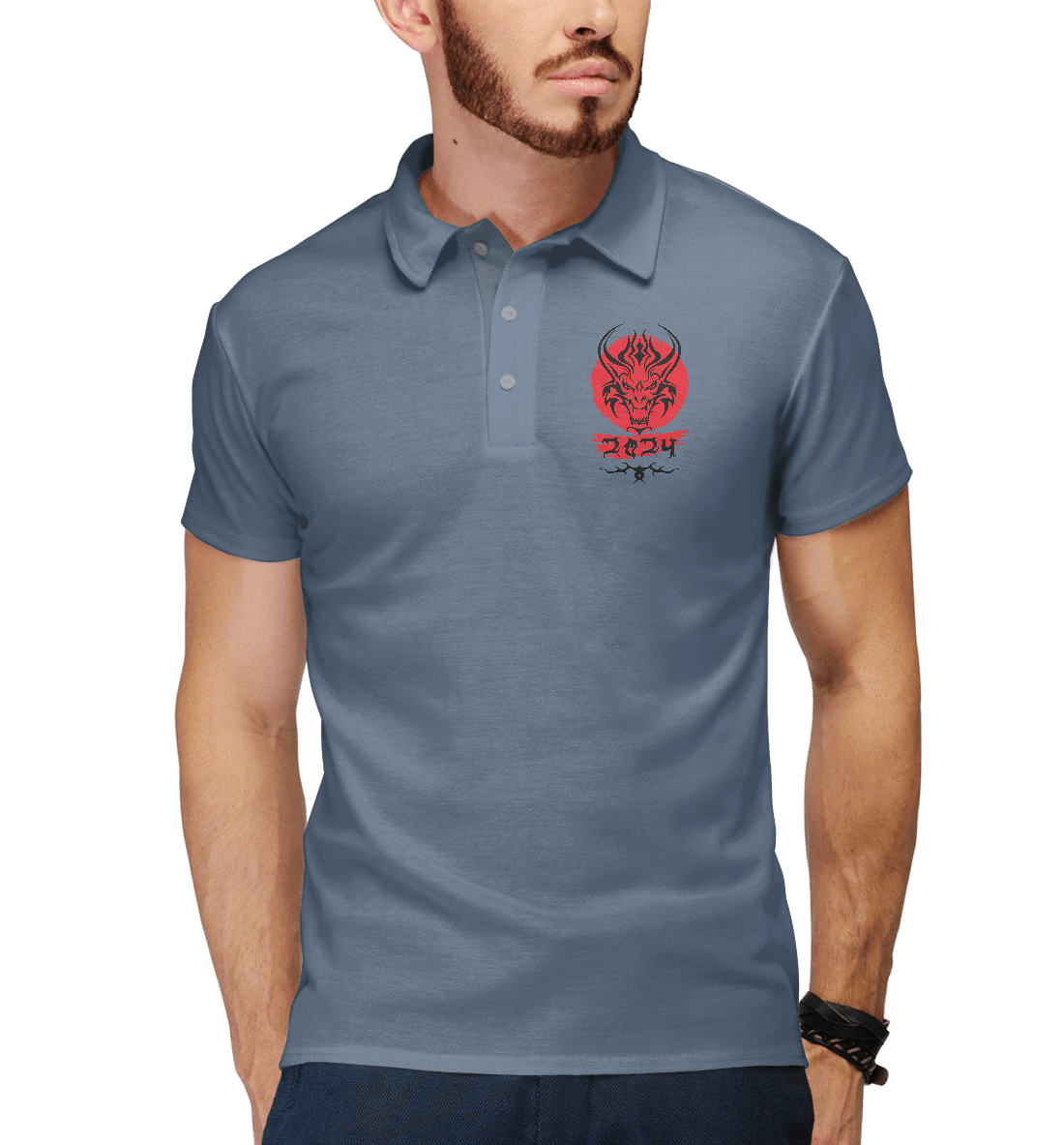 Мужское поло с принтом «Дракон 2024»