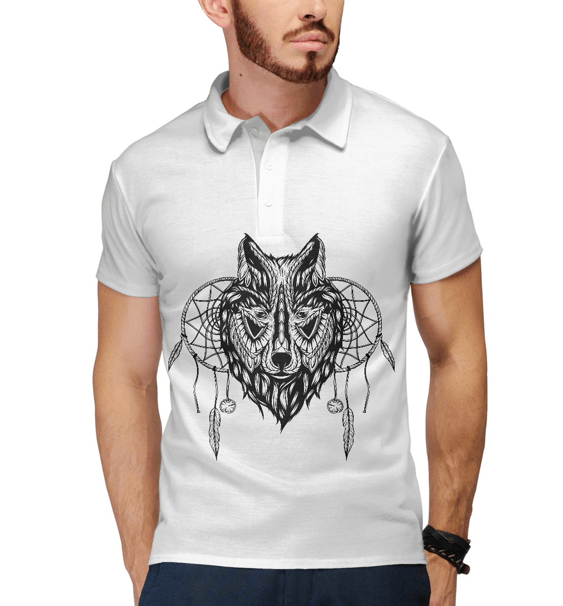 Мужское поло с принтом «Этно-волк»