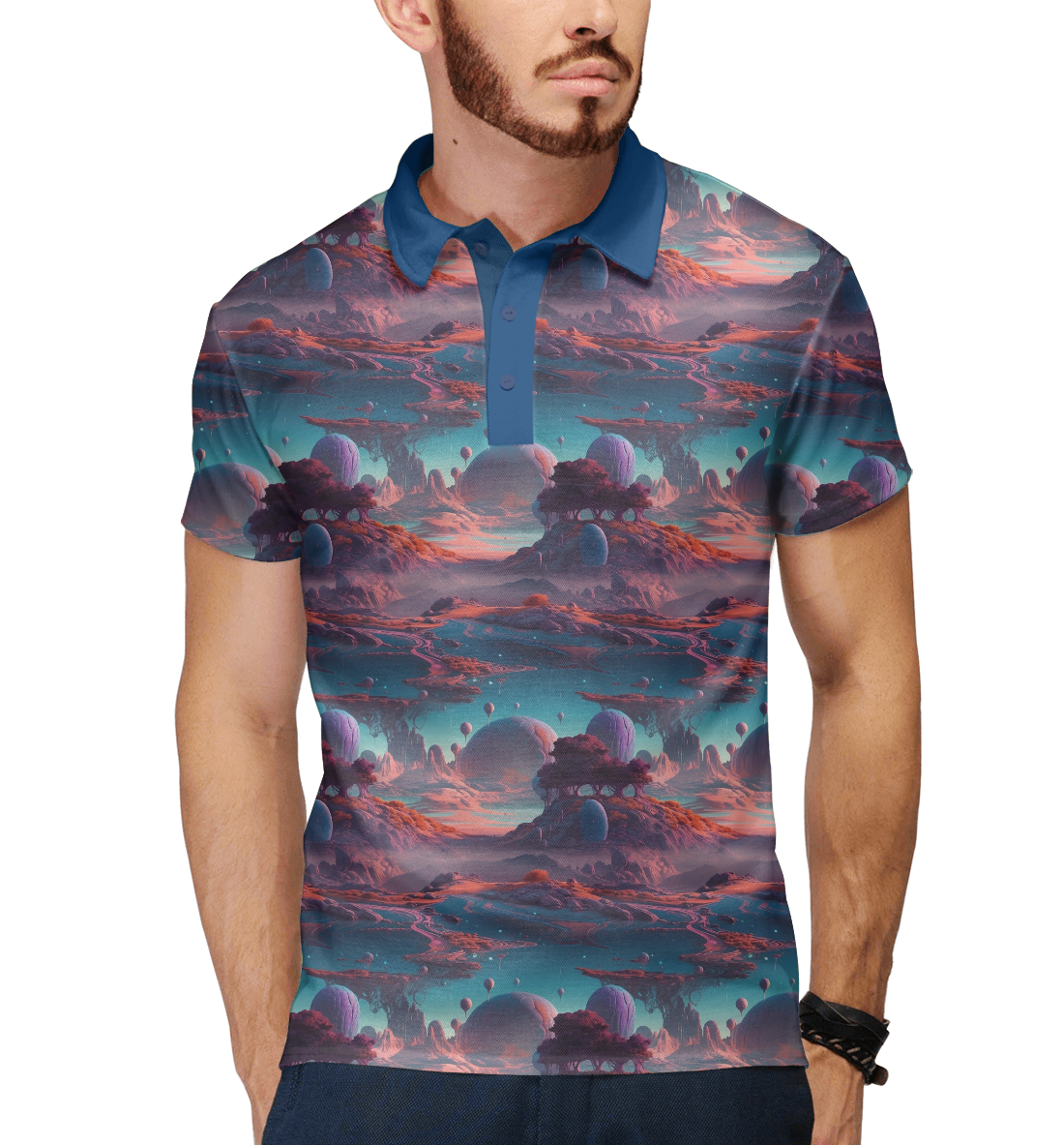 Мужское поло с принтом «Фэнтези пейзаж»