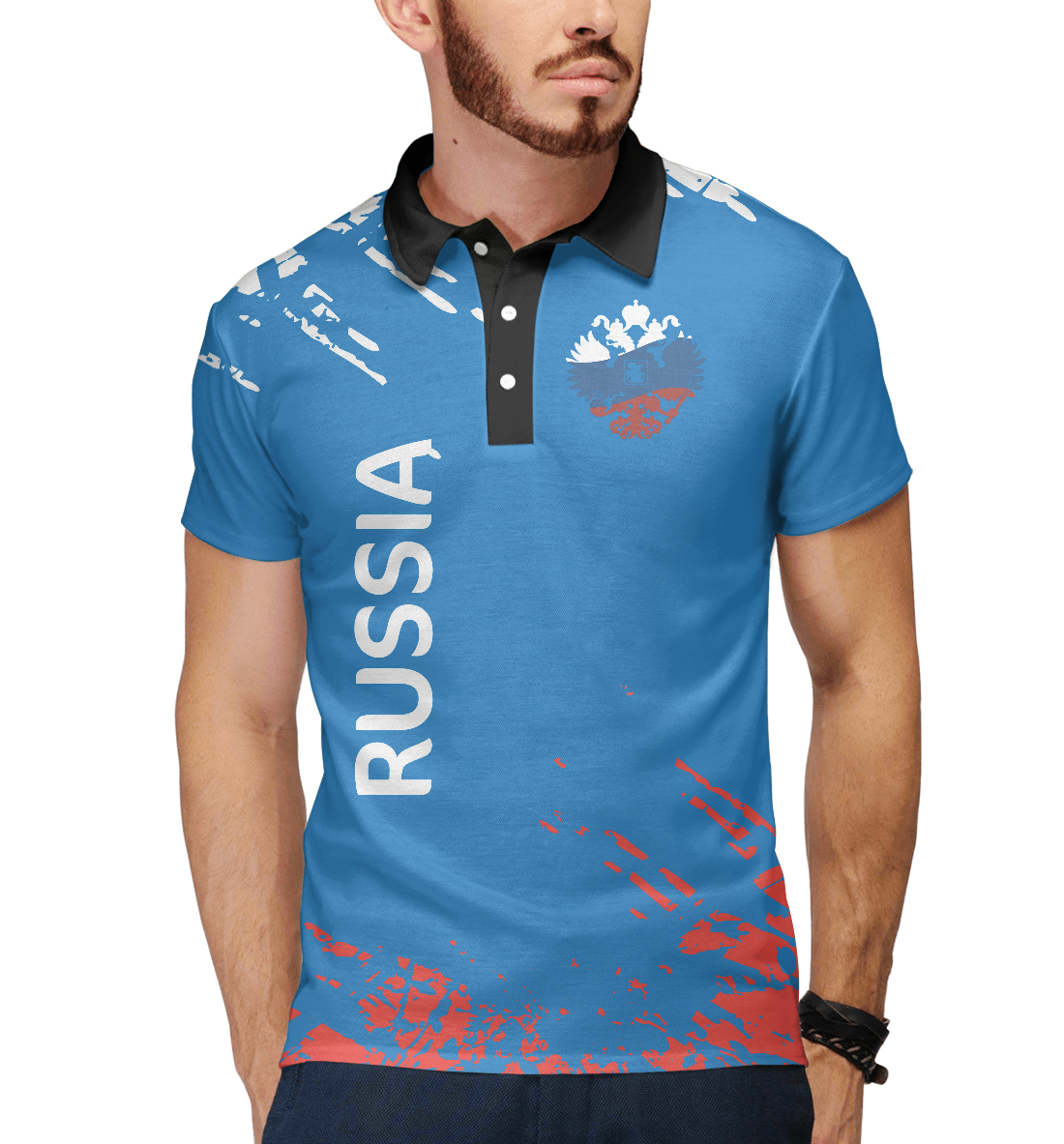 Мужское поло с принтом «Флаг и герб России»