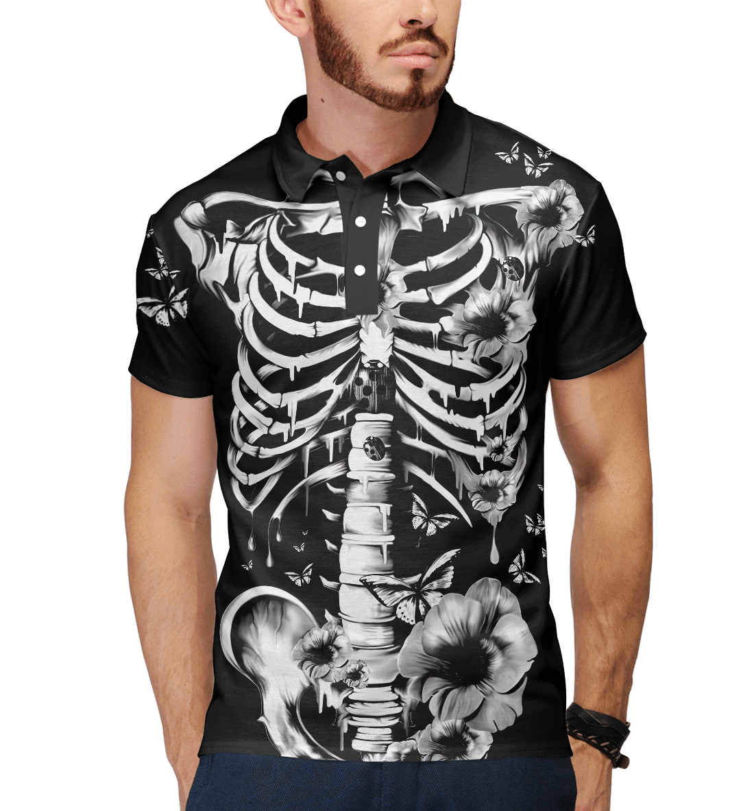 Мужское поло с принтом «Floral Skeleton»