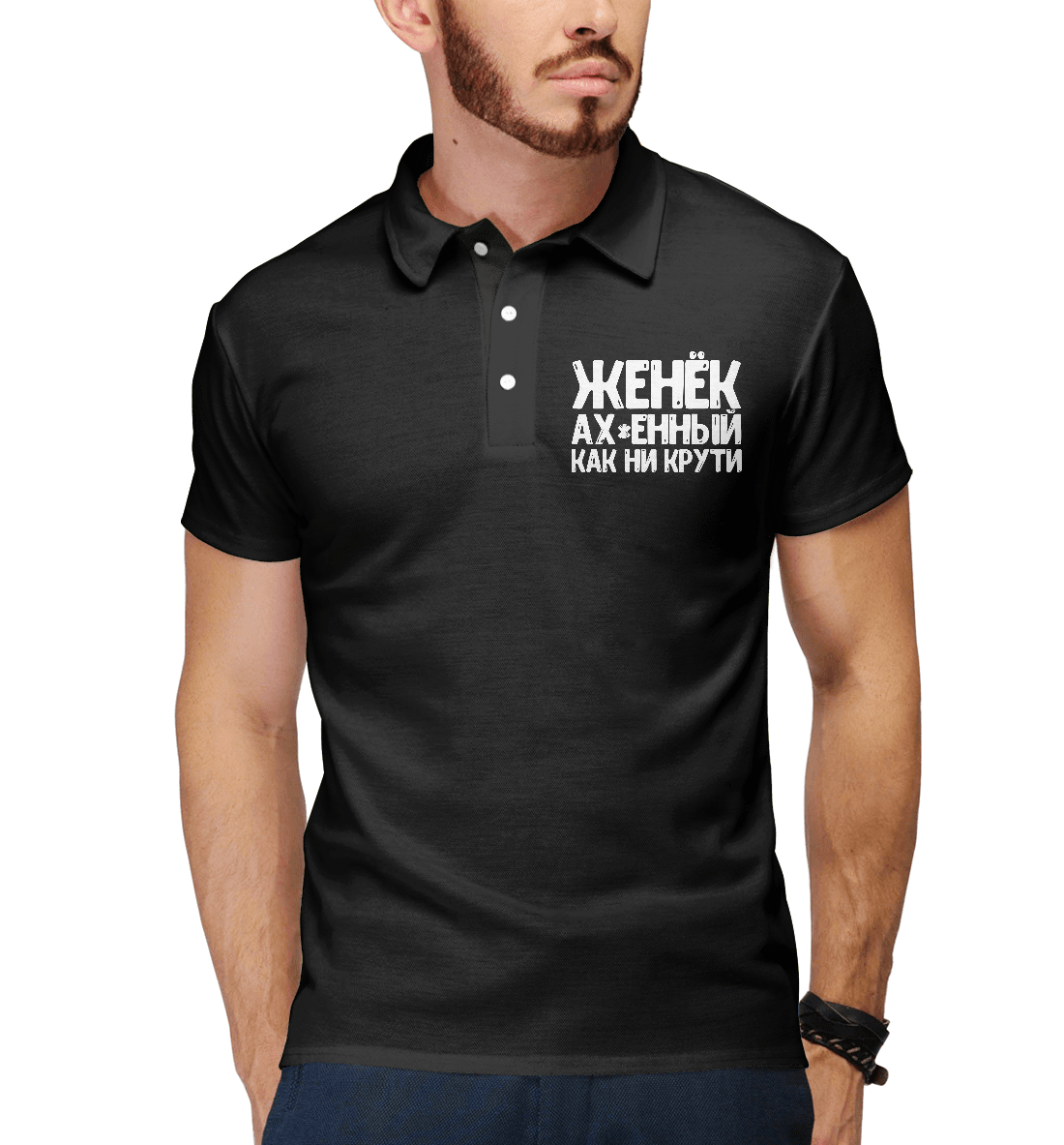 Мужское поло с принтом «Женек ах*енный как ни крути»