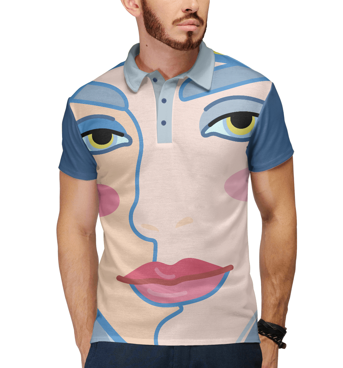 Мужское поло с принтом «Женское лицо с яркими губами»