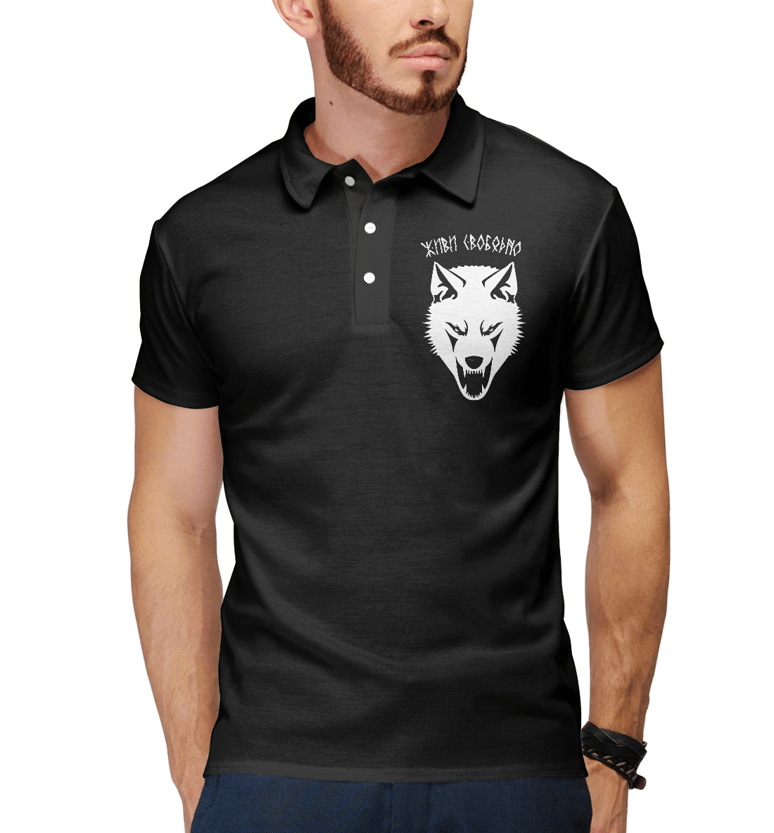 Мужское поло с принтом «Живи свободно (белый волк)»
