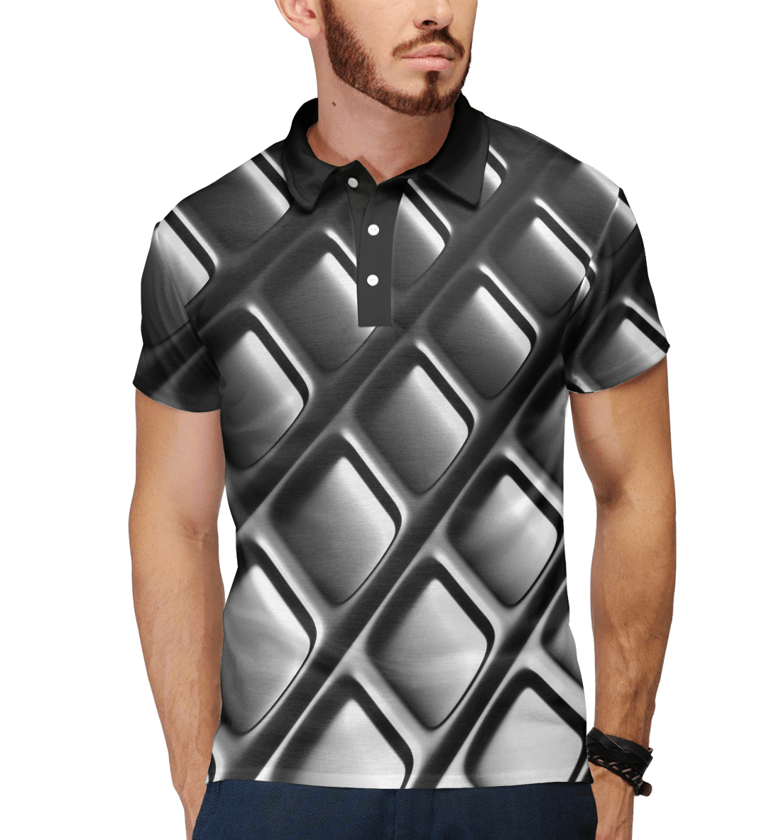 Мужское поло с принтом «Хромированная текстура»